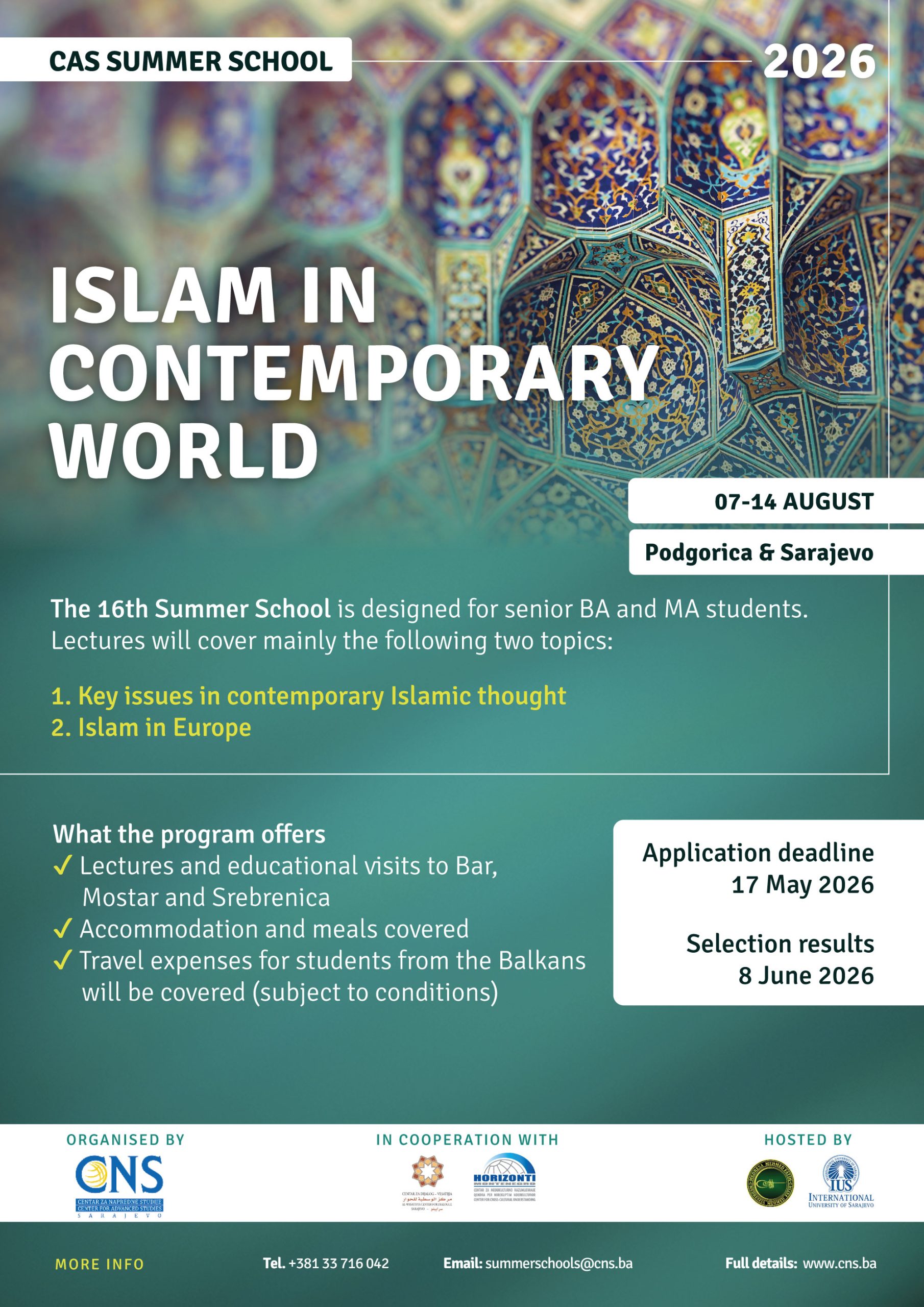 Center for Advanced Studies (Sarajevo) in cooperation with its partners is organizing the 15th Summer...